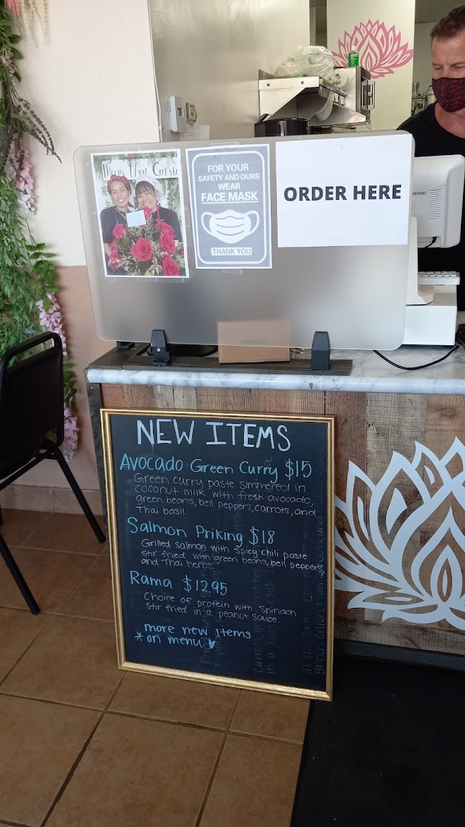 Green curry paste simmered in coconut milk with fresh avocado, green beans, egg plant, bell peppers, and basil. Served with steamed white rice.